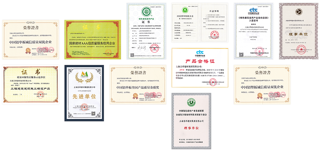 公司自成立以來一直致力于鋁塑復(fù)合板、鋁單板的研究、開發(fā)和生產(chǎn)事業(yè),企業(yè)先后通過了ISO9001質(zhì)量認(rèn)證、ISO14001環(huán)境管理體系認(rèn)證、CE認(rèn)證、安全生產(chǎn)標(biāo)準(zhǔn)化、綠色產(chǎn)品認(rèn)證、全國AAA級誠信企業(yè)、擁有發(fā)明專利和實用新型專利20余項,是鋁塑復(fù)合板行業(yè)標(biāo)準(zhǔn)起草參編單位。旗下的“吉祥家美”品牌榮獲上海名牌。